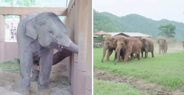 孤児の赤ちゃんがやってきた時のゾウたちの反応がやさしすぎて感動が止まらない タイ 17年6月2日 エキサイトニュース